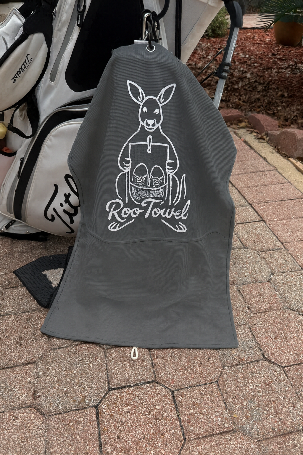 Easily attach the Roo-Towel to your golf bag for quick access and hands-free convenience on the course.