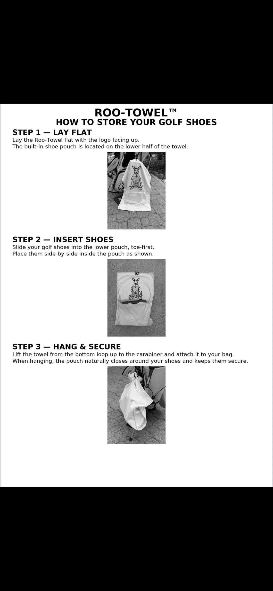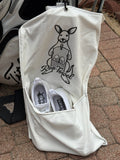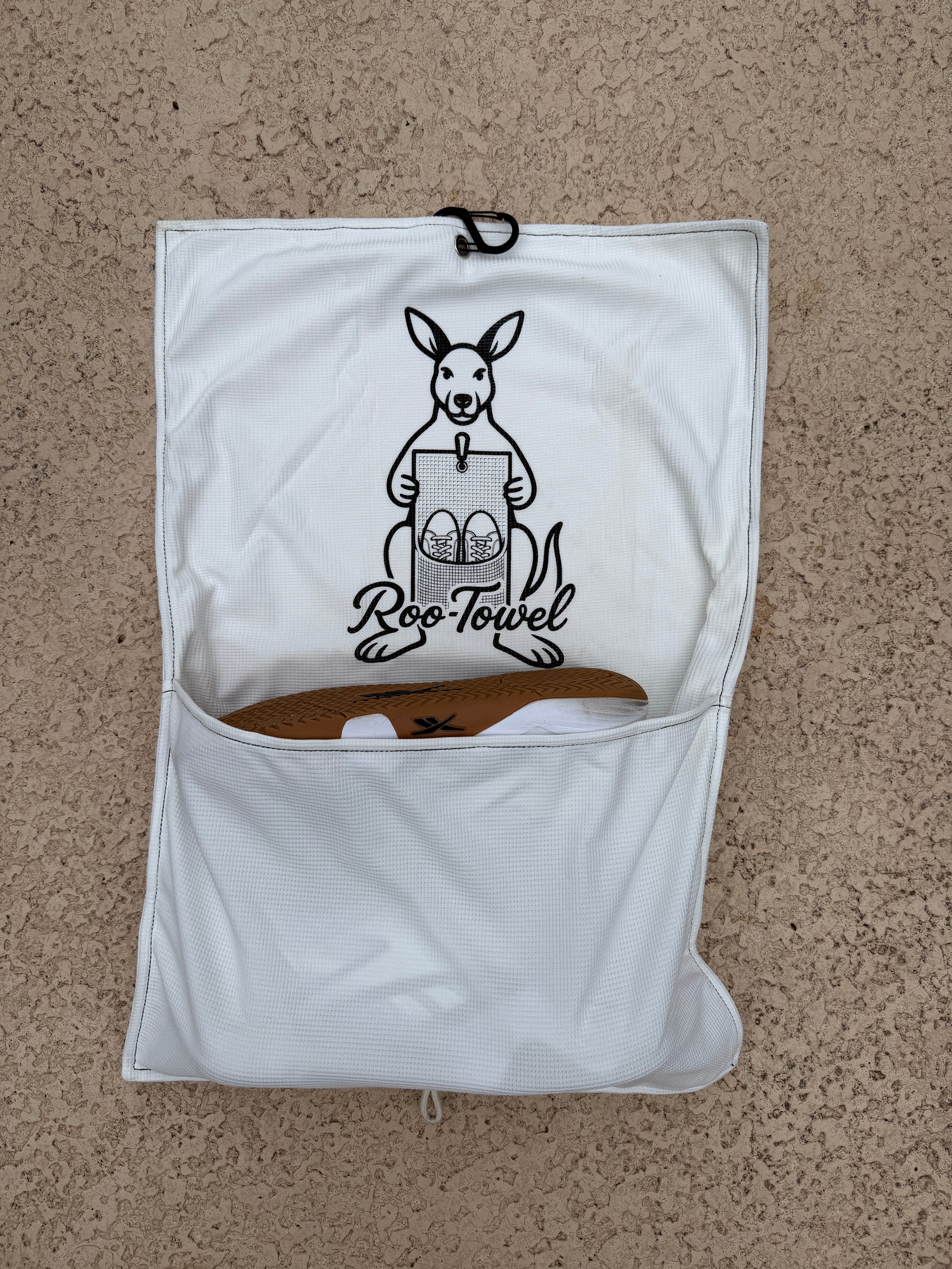 Introducing the Roo-Towel, the perfect blend of performance and practicality for every golfer. Designed with a unique built-in pouch, it gives you the freedom to carry your shoes, gloves, or accessories — all in one sleek towel.